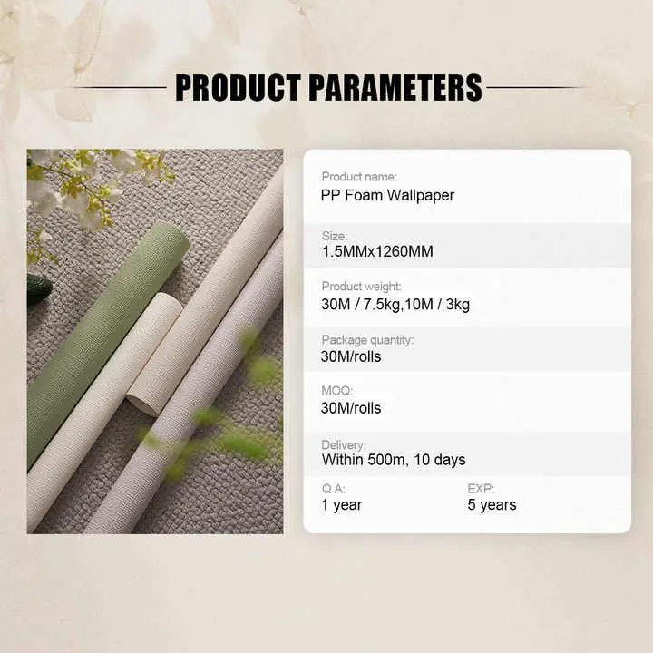 ・多機能利益:この壁紙は、反静的特性、熱断熱、1年間の保証など、さまざまな利点を提供し、ユーザーに心の安らぎとインテリアデザインのニーズに長続きするソリューションを提供します。