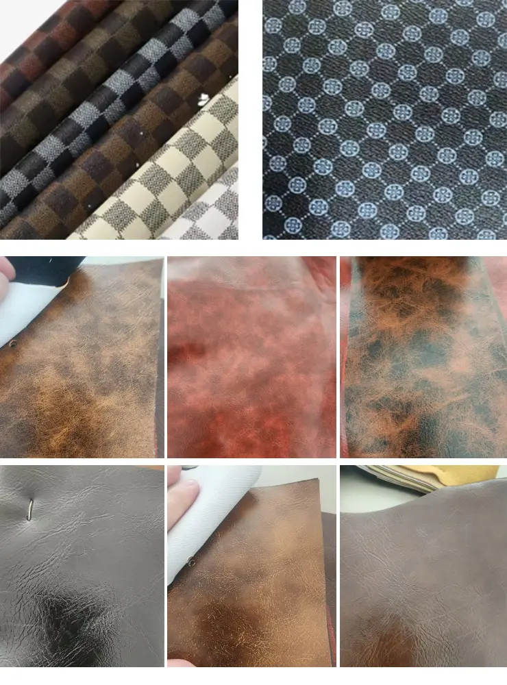 Our products are CE certified and have in stock of factory, welcome to wholesale PVC Leather Breathable Flexible Faux Leather Fabric Film from us. Available in 54/55" width and 0.50-0.90mm thickness options, our PVC fabric boasts:
